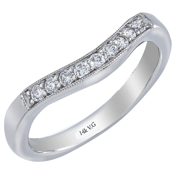 Always a perfect fit for any engagement ring with more than 180 styles. Fits the contours of 95% of all engagement rings on the market. The bands can be customized with different setting styles, metals and diamond grades.The bands are made in USA