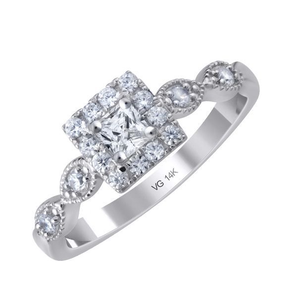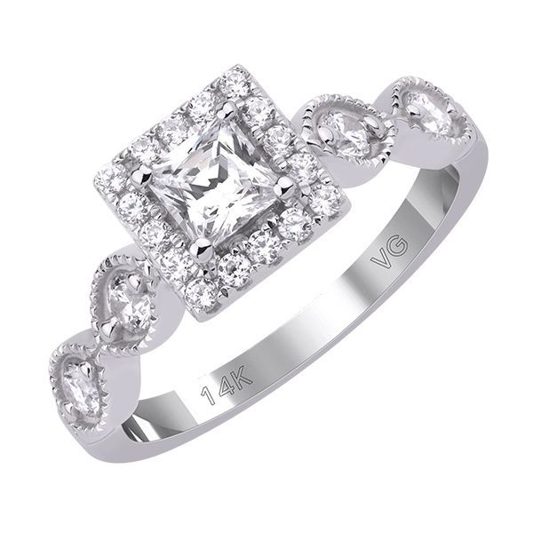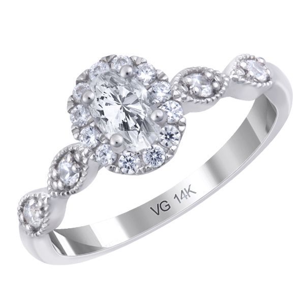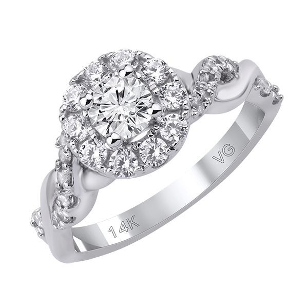 Halo collection by Variety Gem: Capture your lasting love with these stunning 14k and 18K white gold engagement rings, earrings and pendants that showcases an elegant drape of pavé and prong set diamonds around your center stone. Variety Gem's halo jewelry products made in USA to support the jewelry industry in the USA.