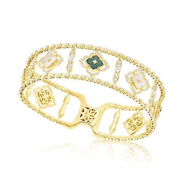 14K Gold Flexible Bangle With Diamonds Mother Of Pearl