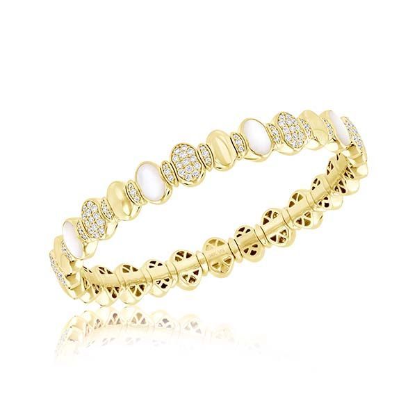 14K Gold Stretchable Bangle Featuring Mother Of Pearl And Diamonds