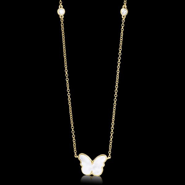 14K Yellow Gold Mother Of Pearl Butterfly Necklace