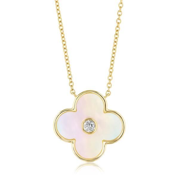 14K Gold Necklace With Diamond And Mother Of Pearl