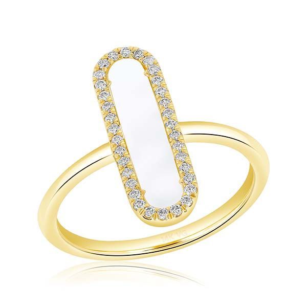 4K GOLD ELONGATED MOTHER OF PEARL RING WITH DIAMONDS