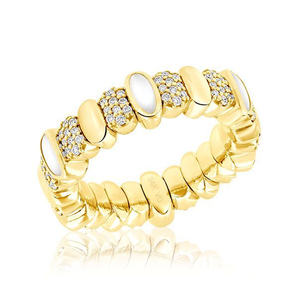 14K Gold Stretchable Ring Featuring Mother Of Pearl And Diamonds