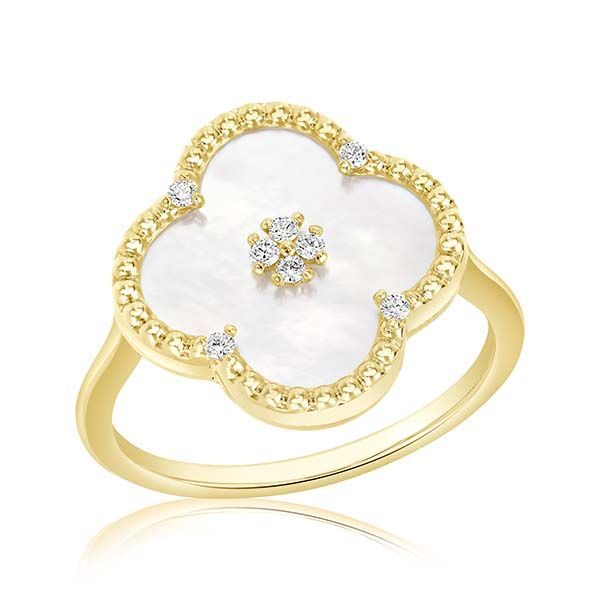 14K Gold Ring With Diamond And Mother Of Pearl