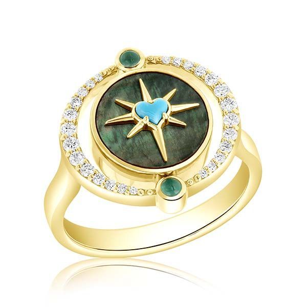14K Gold Double Sided Zodiac Ring With Multi Stone