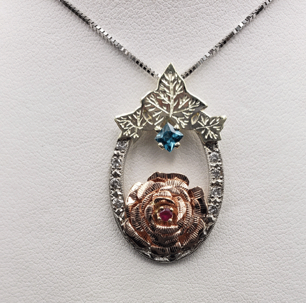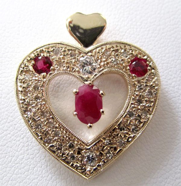 14K Diamond and Ruby Heart Pendant
