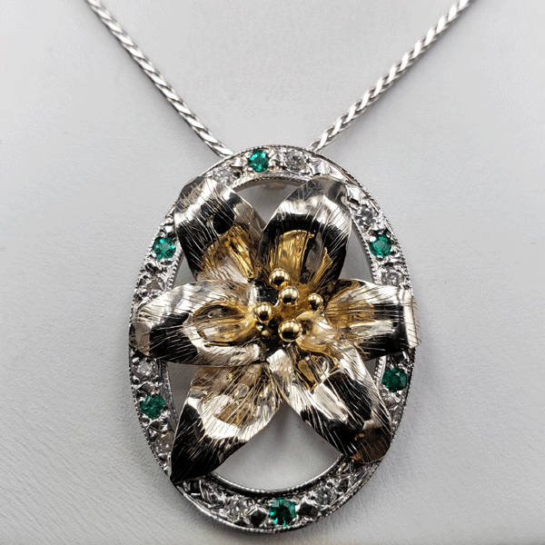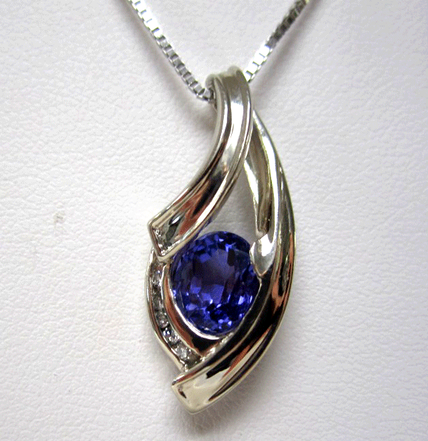 14K White Gold Diamond and Sapphire Pendant