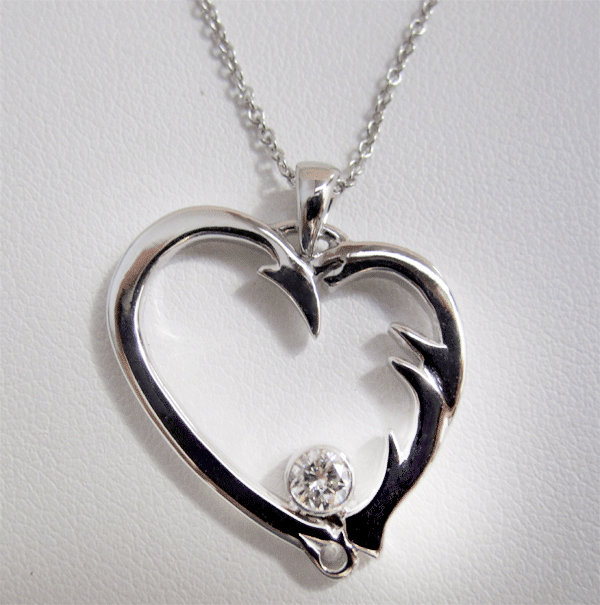 14K White Gold Diamond Heart Pendant